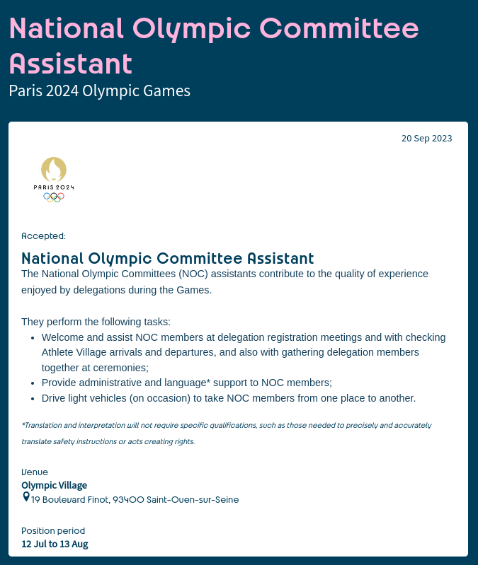 Um es kurz zu sagen: Von alleine wäre ich nicht auf die Idee gekommen, mich als ehrenamtlicher Mitarbeiter für die Olympischen Spiele anzubieten. Meine Frau hingegen, eine patriotische Französin, sportbegeistert und informiert, meldete sich auf der Seite https://www.paris2024.org/ an, um sich als Volonaire zu bewerben.