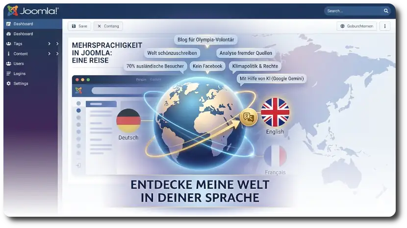 Joomla natively offers the possibility to provide the homepage in multiple languages. This requires the site to be cleanly structured, which can quickly overwhelm a beginner. Now, after three years, I have finally sat down and created a parallel English-language version. Many articles are still missing, but everything coming in the future will be published on this site in English and eventually also in French. This makes sense, as over 70% of actual visitors come from abroad – and usually leave quickly.